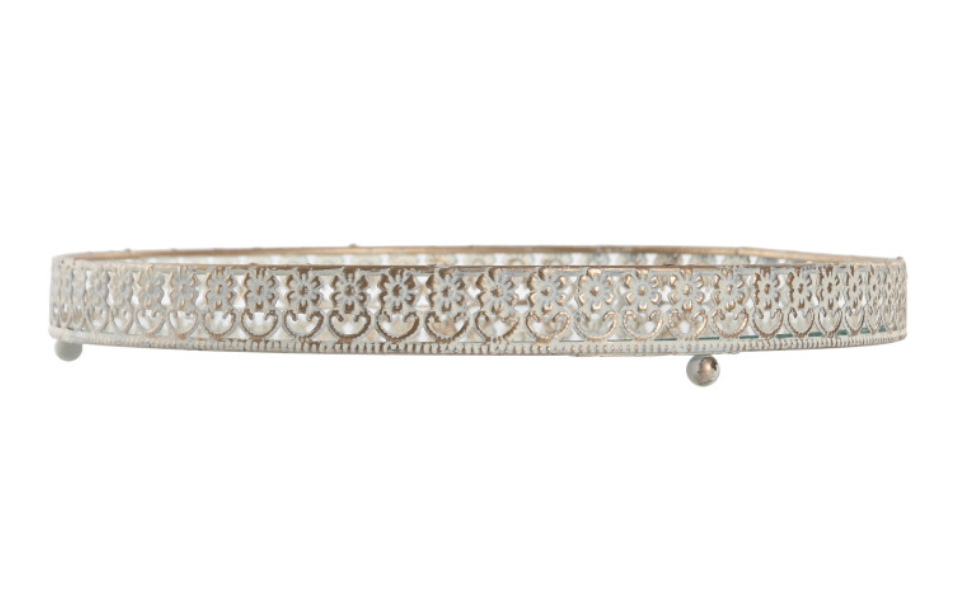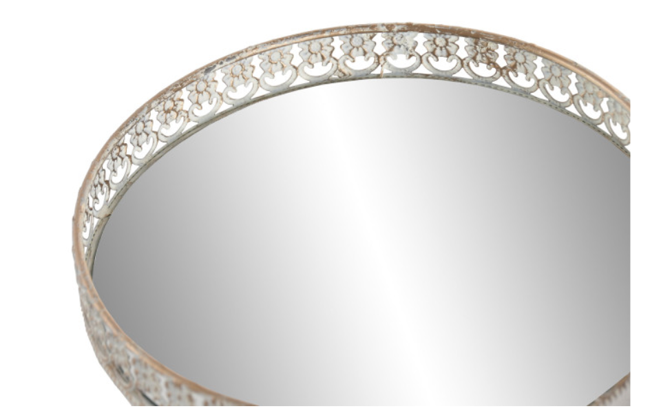 Set de 2 bandejas decorativas en metal con base de espejo y elegante acabado envejecido. Ideales para organizar o decorar con estilo, aportando un toque sofisticado y luminoso a cualquier ambiente.