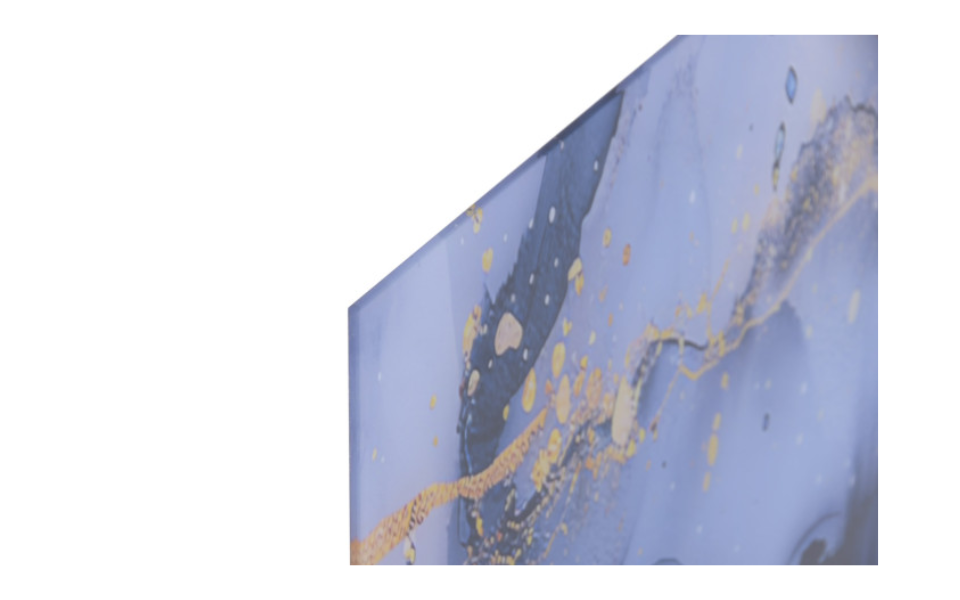 Elegante cuadro decorativo en cristal templado con diseño moderno en tonos azules. Ideal para aportar un toque sofisticado y contemporáneo a cualquier espacio del hogar.