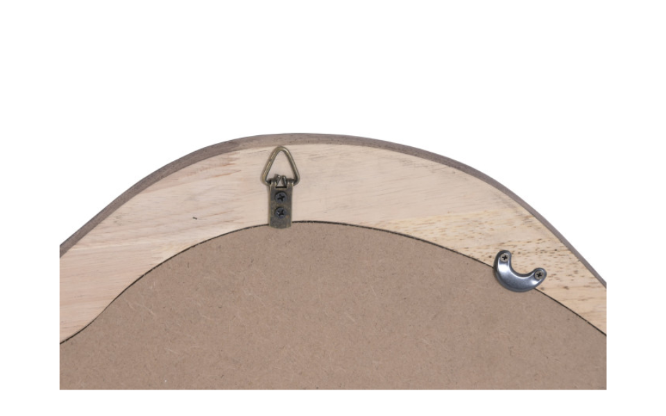Espejo decorativo con marco de madera, ideal para aportar amplitud y luminosidad a cualquier espacio. Su diseño versátil encaja perfectamente en salones, dormitorios o recibidores.
