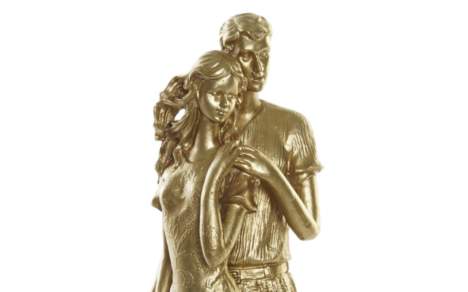 Aporta elegancia y simbolismo a tu hogar con esta sofisticada figura decorativa de pareja en resina con acabado dorado. Su diseño estilizado y moderno transmite unión, armonía y complicidad, convirtiéndola en una pieza ideal para realzar cualquier espacio.