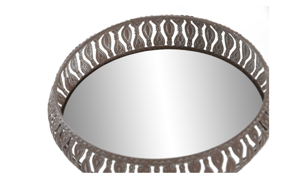 Elegante set de 2 bandejas decorativas en metal con base de espejo y acabado envejecido. Perfectas para colocar velas, perfumes o pequeños accesorios, aportando un toque sofisticado y luminoso a cualquier espacio del hogar.