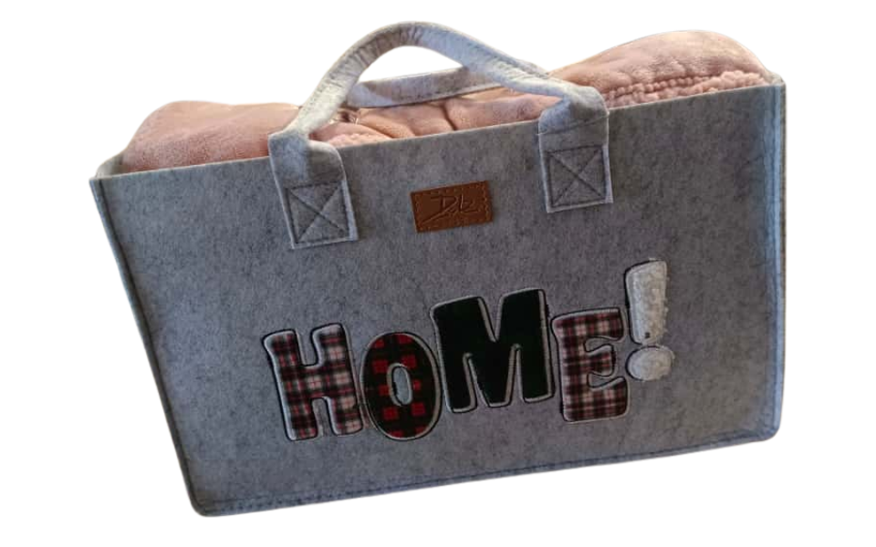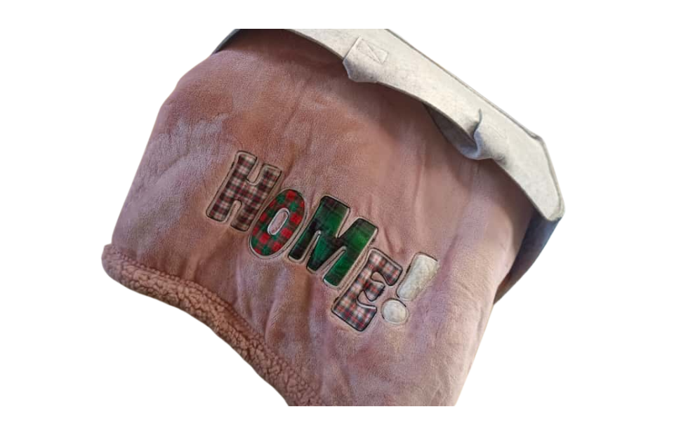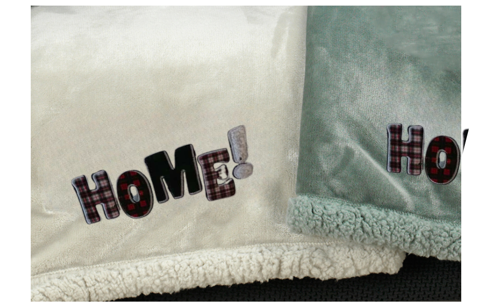 Manta plaid con la palabra HOME! bordada de la marca Dolz. La manta en la cara superior es lisa en tejido de sedalina, en la cara posterior es de sherpa borreguito a tono. Incluye una bolsa maleta de regalo con la misma palabra HOME ! bordada. Producto recomendado para regalo. Tamaño manta: 130×160 cm. Composición: 100% Poliéster. Packaging en bolsa de pvc protectora. Tres colores disponibles: beige, gris, verde y rosa.