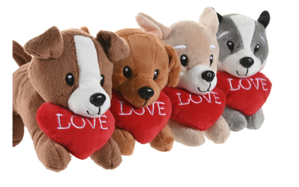 Peluche de perro con corazón 10X10X14